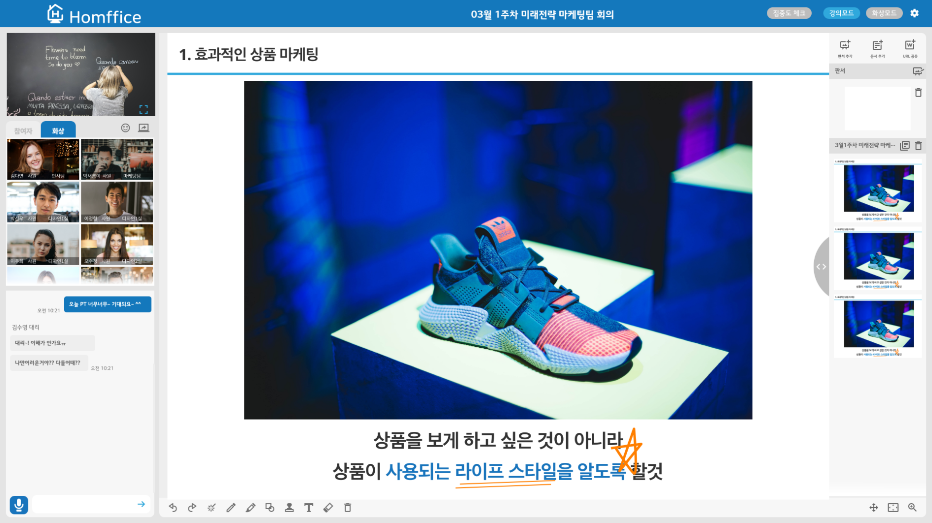 회의, 제품 설명회와 같은 비대면 마케팅 등
